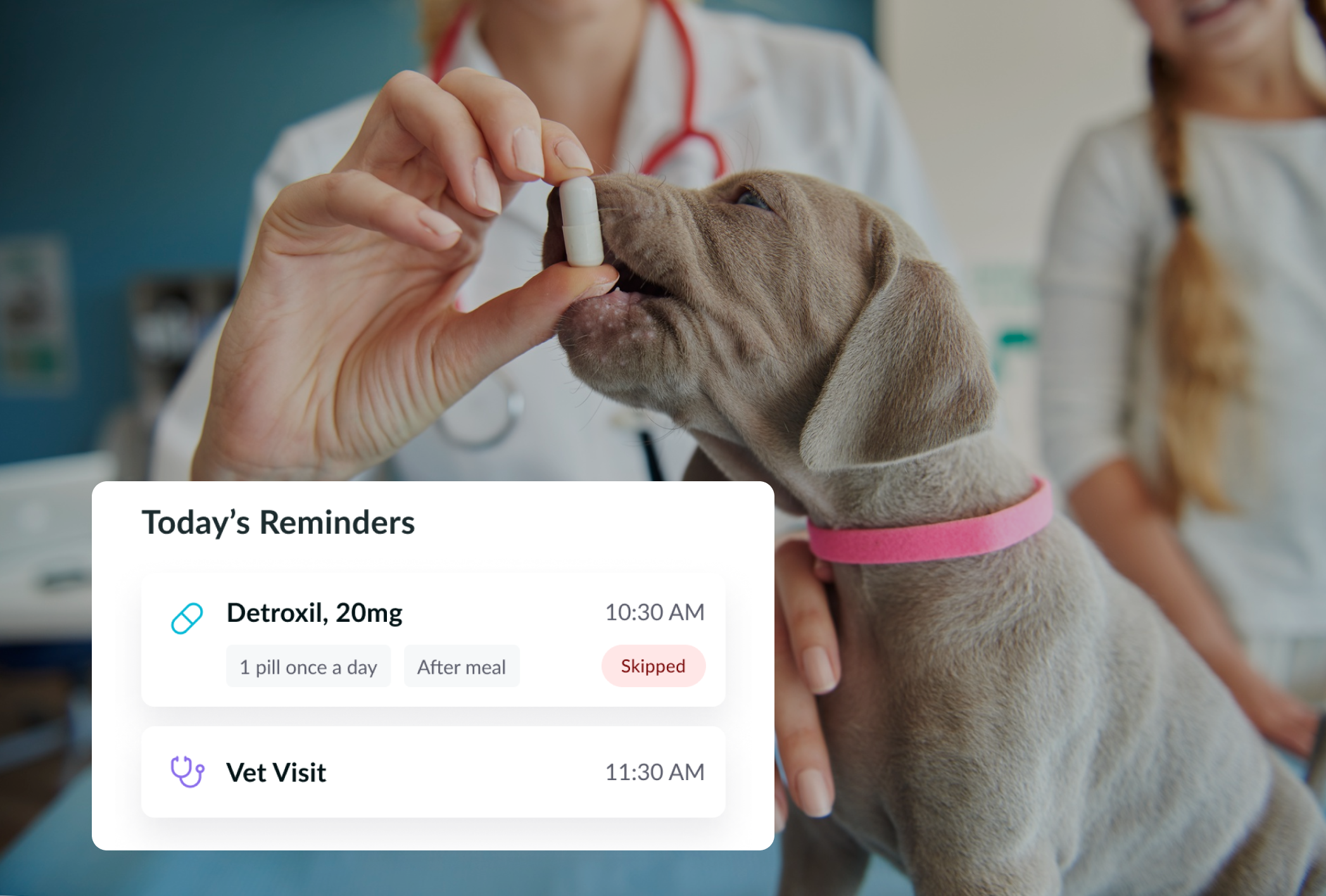 The Pet Care Hub centralizes vet & other care givers details along with emergency contacts. Easily manage all aspects of your pet’s care in one place.