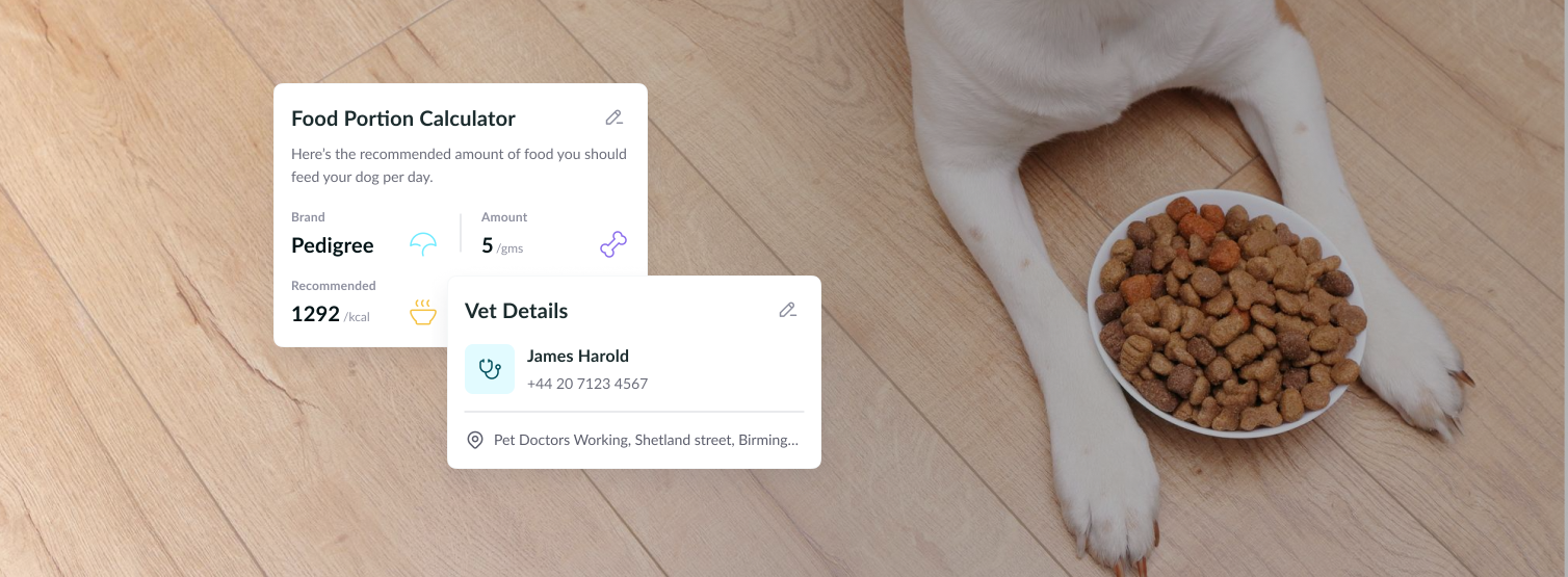 Manage your pets caregivers, medication reminders, weight, food portions , appointments & more from your PetCare Hub.