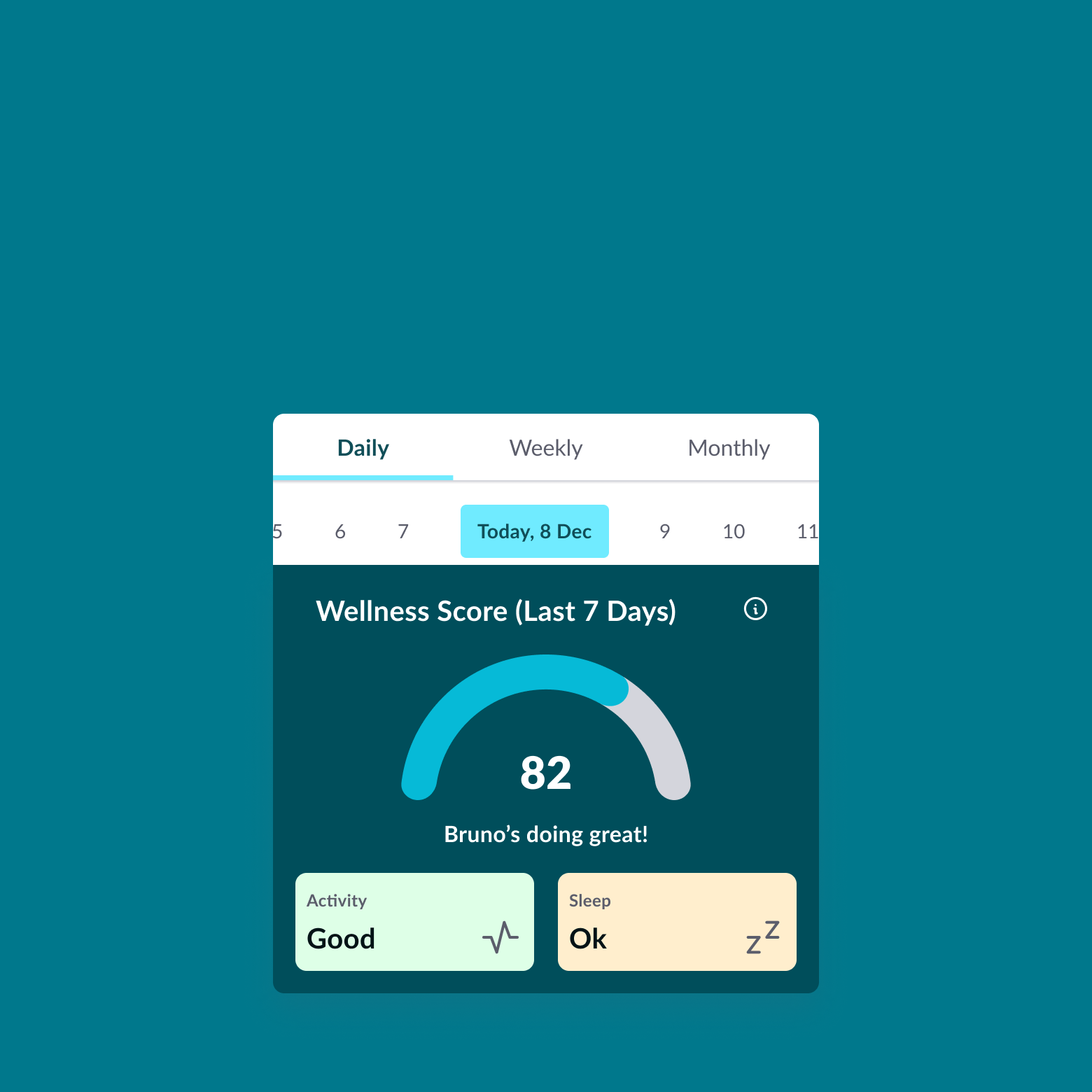 Know your pet’s wellness score, monitor their sleep & view activity levels at a glance to ensure proactive pet care with invaluable health insights and alerts.